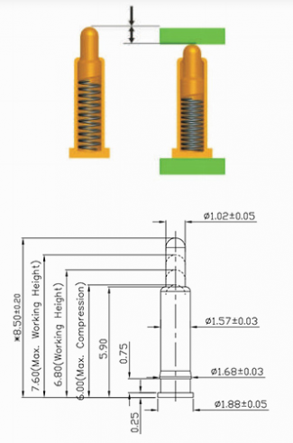 Базова робоча висота Pogo Pin(підпружинений конектор):